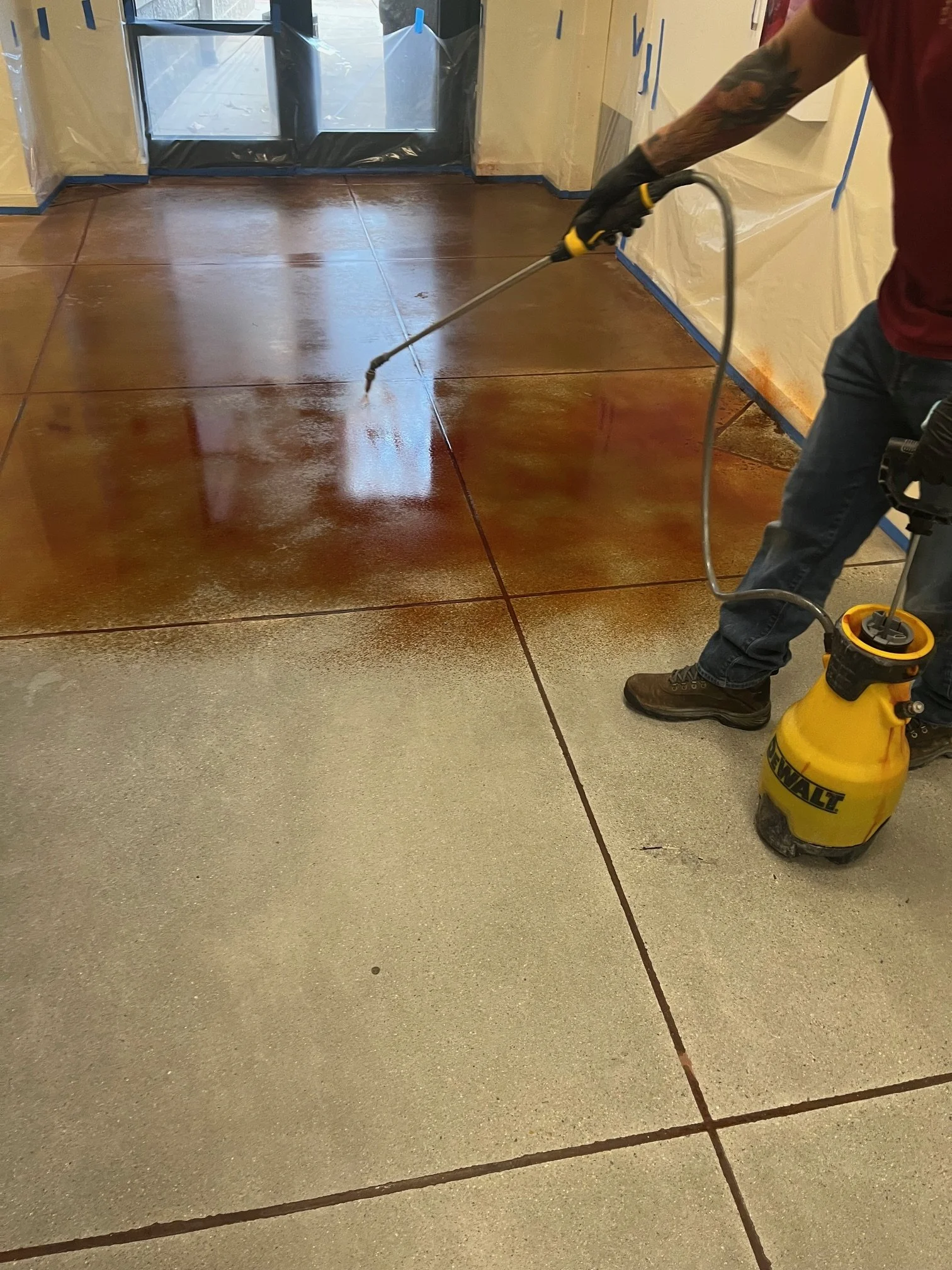 CMR Alliance specializes in concrete restoration systems that improve both appearance and performance. For this project, the team used a multi-stage staining and polishing approach designed to create depth of color, clarity, and a durable finish.